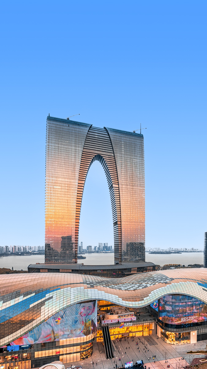 苏州中心项目占地面积约16.7万平方米,位于苏州市域中CBD核心,紧邻金鸡湖5A级,项目规划开发总建筑面积约113万平方米,集购物中心、办公楼、服务型公寓、酒店于一体。