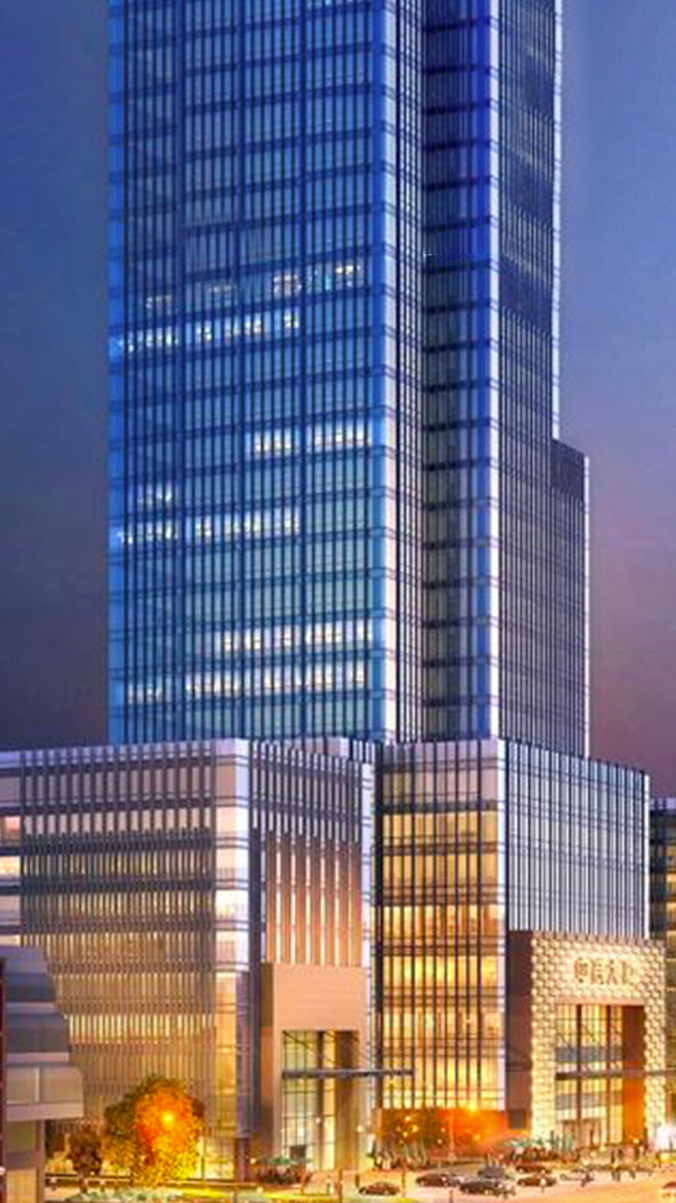 地上39层,地下4层,负二到负四为停车场,负一层阳光商务餐厅,1-4层为商务配套型商业,5-36层为5E级商务办公写字楼,37层为云顶企业家,以双国企的实力为企业家搭建高规格的资源链平台,外立面为中空LOW-E玻璃幕墙。该项目全部采用三菱电梯共22台。